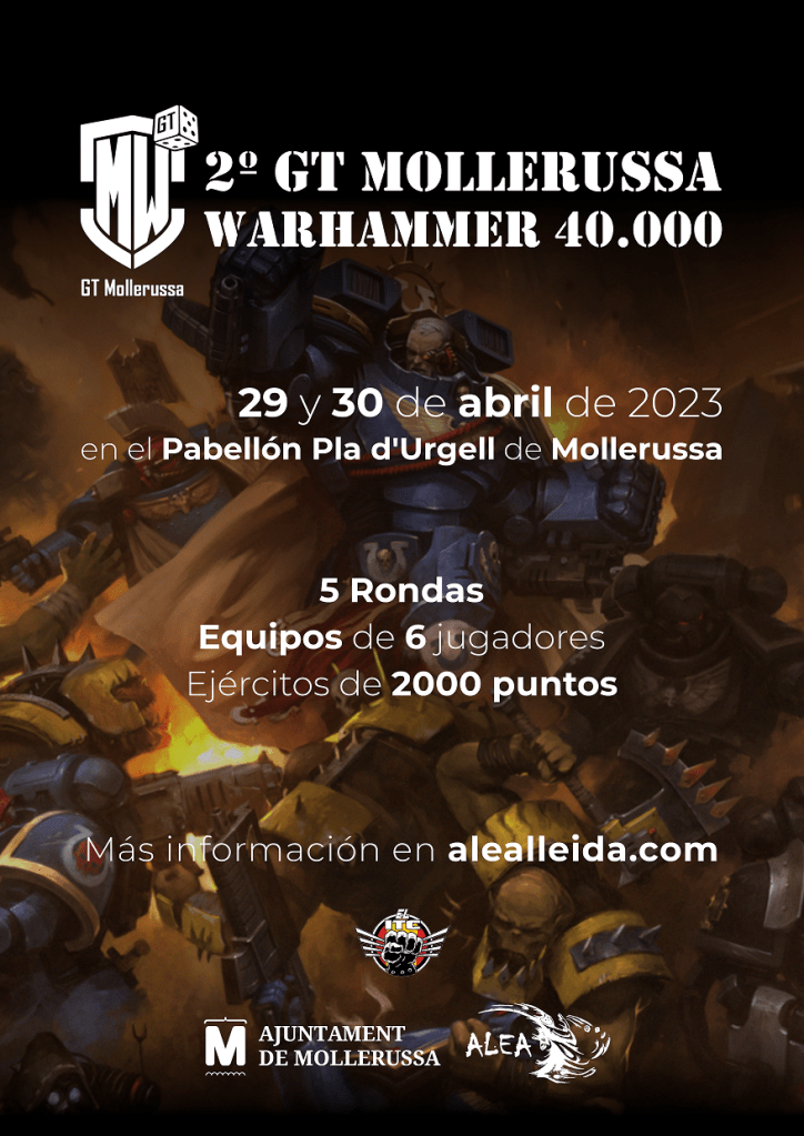 Estamos orgullosos de presentar la segunda edición del GT de Mollerussa de Warhammer 40.000 los días 29 y 30 de abril de 2023.