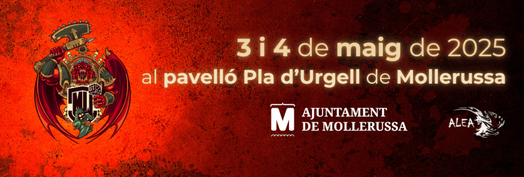 Desde la asociación ALEA Lleida y en colaboración con el Excmo. Ayuntamiento de Mollerussa, nos complace anunciar el IV GT Mollerussa de Warhammer 40.000 los días 3 y 4 de Mayo de 2025.